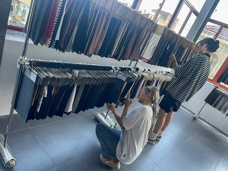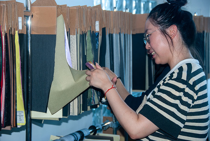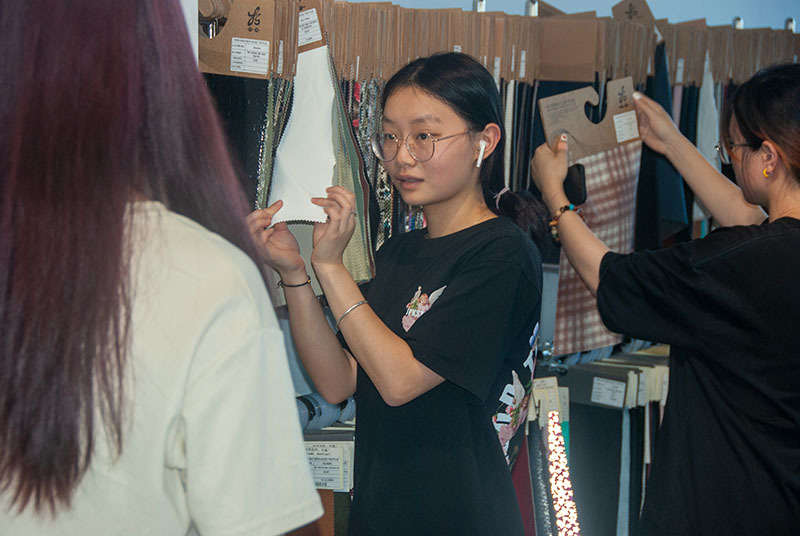 Zhijiang set up students to visit and understand our showroom about more than 5,000 fabric samples and more than 30 samples of finished products.